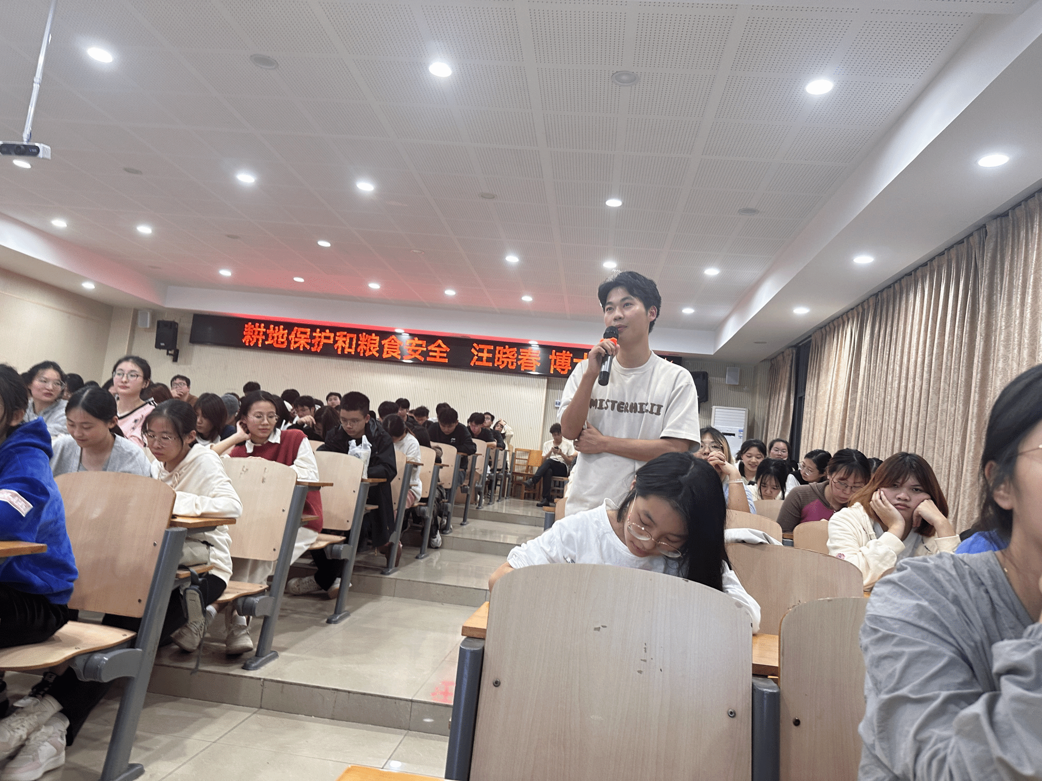 讲座中,汪教授凭借深入浅出的讲解以及亲切的互动交流,成功点燃了同学们的参与热情,讲座中大家积极参与互动。同学们在讲座后纷纷反馈,深刻认识到耕地保护乃国之根基、民之命脉。他们表示,不仅学到了丰富的知识,此次讲座更让每一位参与者都真切地感受到自身肩负着耕地保护的重大责任与神圣担当,深刻领悟到这是对国家稳定、民族复兴的有力支撑。同学们还积极交流分享了在日常学习生活中的实际行动,如倡导珍惜粮食、反对浪费,宣传耕地保护政策,参与相关调研与实践活动等,努力将耕地保护和粮食安全理念转化为具体的行动自觉,展现出新时代青年强烈的家国情怀与社会责任感。讲座最后,汪教授向各位积极互动的学生送出了保护耕地珍惜粮食荣誉小勋章。