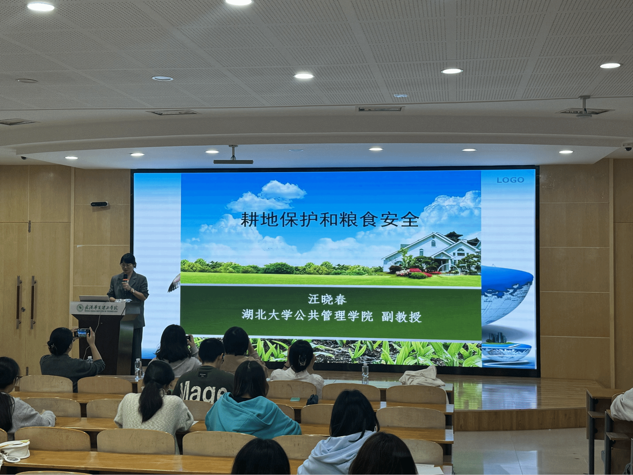 讲座伊始,城乡规划专业骨干教师杨喧老师对汪教授进行了介绍,并表达了热烈的欢迎。汪晓春副教授以“俄乌巴以冲突对世界粮食安全的影响”这一深刻话题引入,激起同学们的广泛思考。随后,她以“粮食是国之大者”为切入点,用通俗易懂的语言与生动案例,深入剖析了耕地保护的重要意义,同学们听得全神贯注,不时点头表示认同。