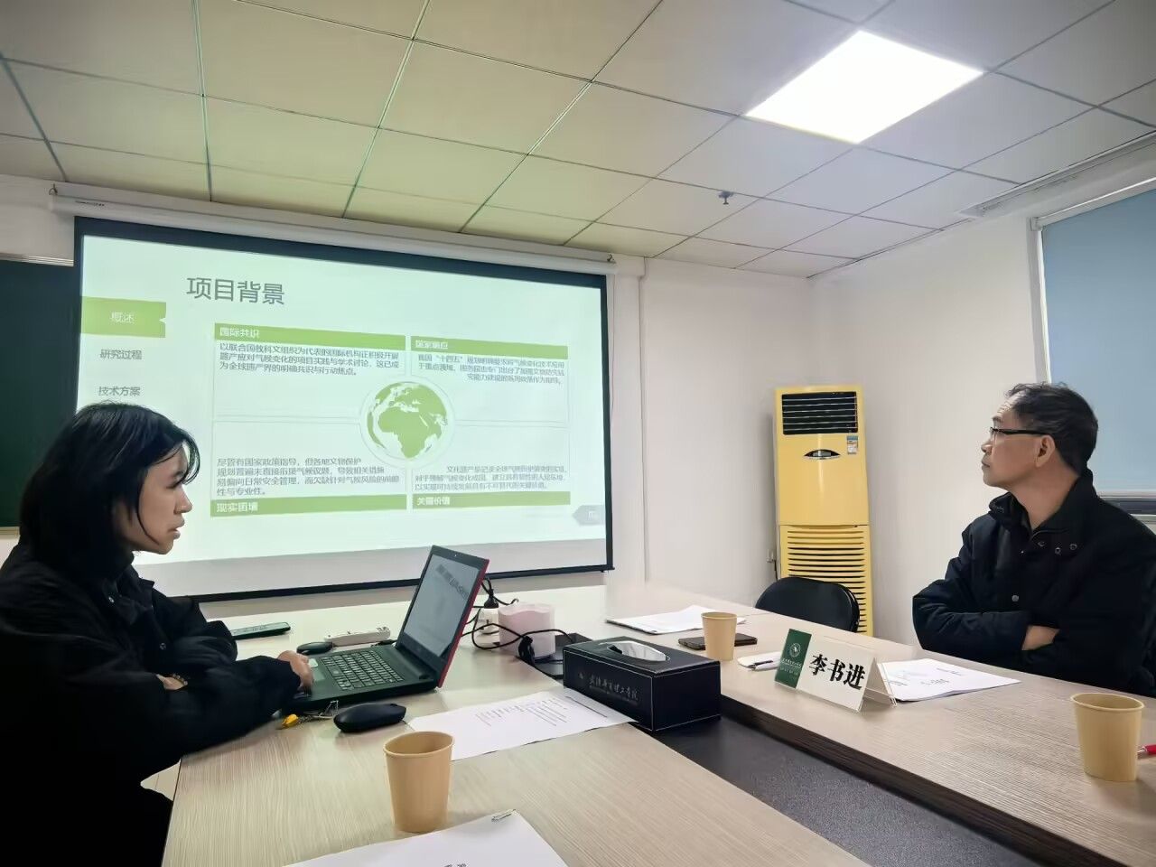 胡琳老师就《应对气候变化威胁的城市历史街区保护方法研究》进行汇报,探讨了气候适应性与建筑保护协同路径。潘梽橼教授建议强化不同气候情景下的韧性评估;李书进教授提及可融入传统建筑智慧与现代技术;密新武教授则强调保护中的社区参与机制,让课题更具实施性。
