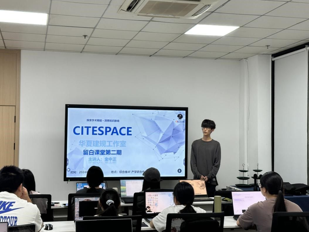 2024年6月3日晚上18:00,华夏建规工作室在综合楼四楼产学合作基地会议室成功开展第二期留白课堂:Citespace软件应用培训活动,本次活动由华夏建规工作室学生负责人金中正主讲。城乡规划专业负责人张城芳,城乡规划系副主任张力文,华夏建规工作室指导老师刘雄、杨亨、向添媛,以及工作室应用科学研究项目组、华夏建规工作室各部门的成员在内的34位师生共同参与了此次活动。