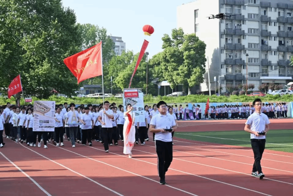 4月18日,beat365第十七届运动会暨2025年教职工运动会开幕式上,土建学院方阵以独特创意成为全场焦点。智能测绘工作室成员王羿霖、胡家豪操控两架无人机,稳稳飞行在方阵队伍正前方,通过悬停、转向等动作与方阵行进节奏完美配合,全程零失误。