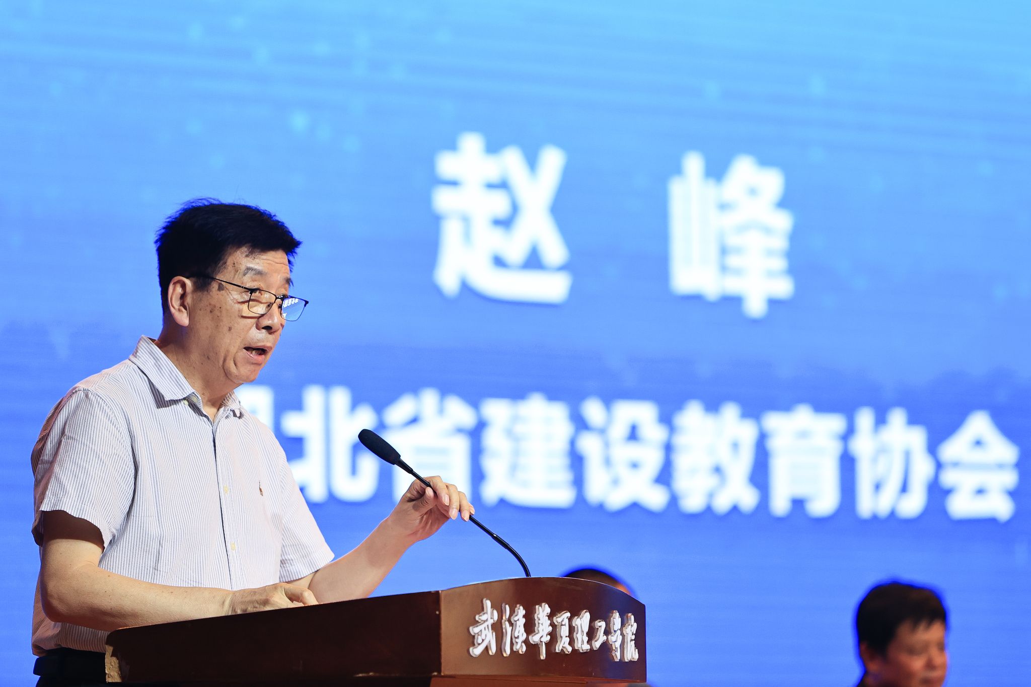 湖北省建设教育协会会长赵峰代表协会致辞。他指出,协会以团结组织全省建设教育工作者,推进教育改革,培养合格的建设人才为使命。希望参赛师生秉承二十大精神,在竞赛中,推动发展理念之变、竞争实力之变、创新思路之变。