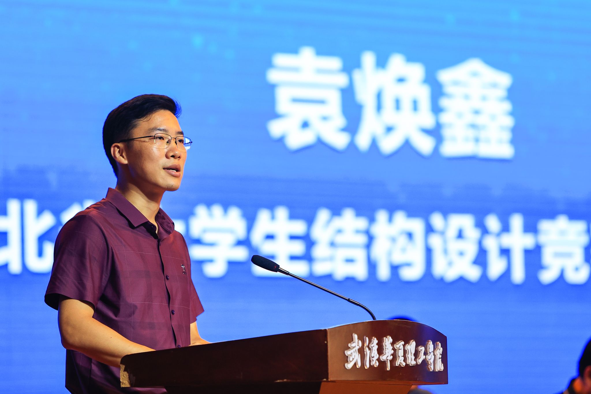 湖北省大学生结构设计竞赛委员会秘书长袁焕鑫就本次大赛的指导思想和基本安排作了发言。他希望各参赛队伍能创新结构设计思想,提交优秀作品,同时也相信竞赛能够在公平、公正、公开的原则下顺利进行,进而遴选出实力超群的队伍参加全国大学生结构设计竞赛。