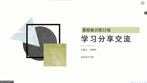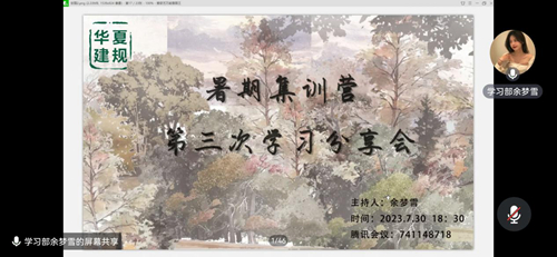 活动邀请城乡规划专业21级叶文杰、廖晋方以及22级的廖优、王家乐、王良团等同学分享。会议开始,主持人余梦雪对本次暑期集训营打卡情况进行了简述,强调了暑期学习的重要性,同时也希望在接下来的8月份,大家可以继续按照自己的计划进行学习。