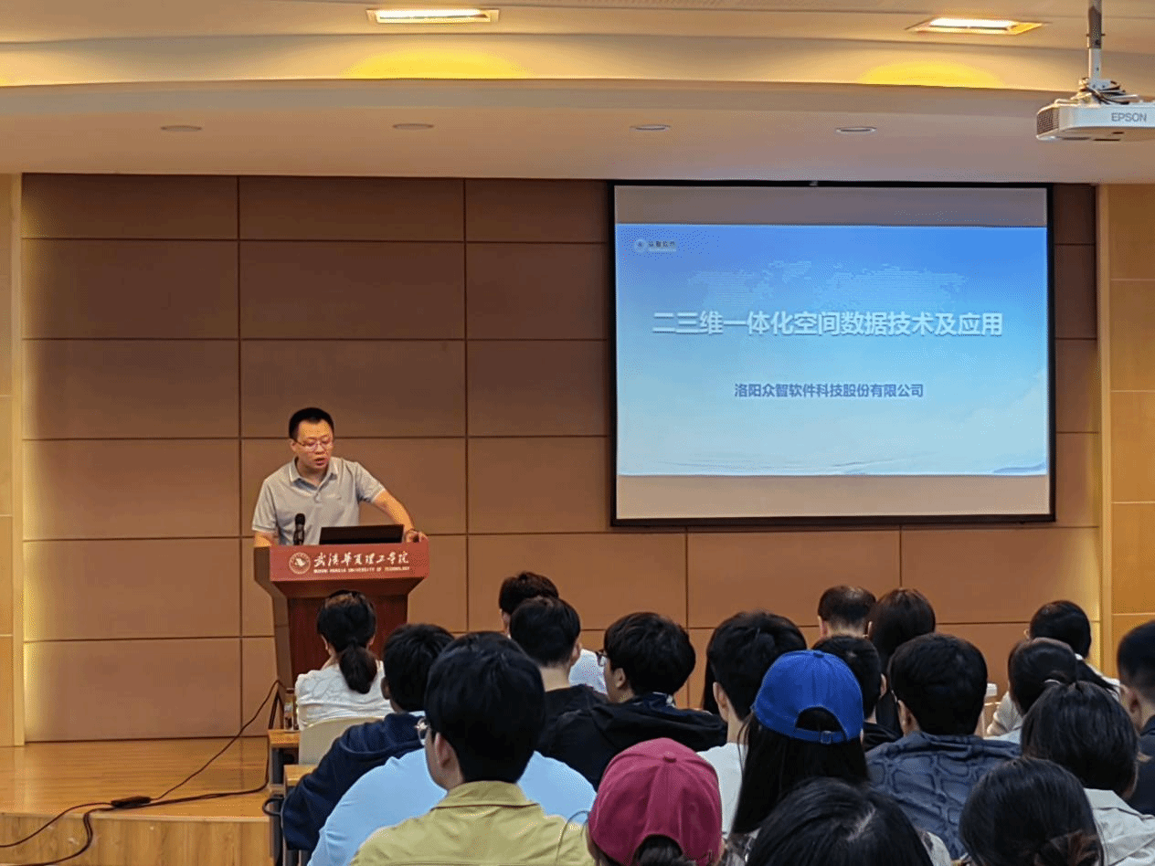 会议开始,张力文对此次出席嘉宾、主讲人及洛阳众智软件科技股份有限公司进行了介绍,并向同学们普及了国土空间规划的相关知识,在简洁明确的讲解后,周经理开始做主题分享。