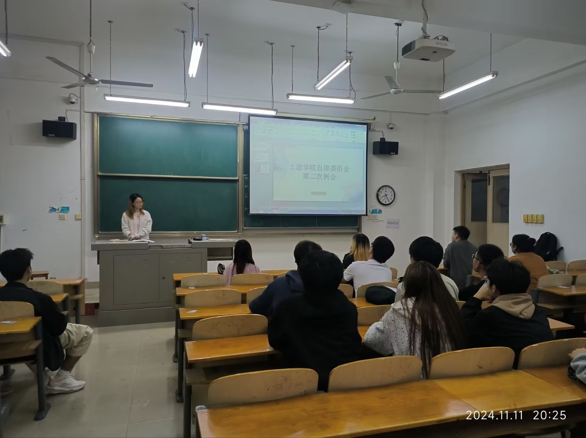 在这个充满活力的季节里,土木建筑工程学院自律委员会于2024年11月11日在教学楼2-409召开了第二次例会。本次例会旨在进一步加强委员会成员之间的沟通与合作,共同推动学院自律工作的顺利开展。