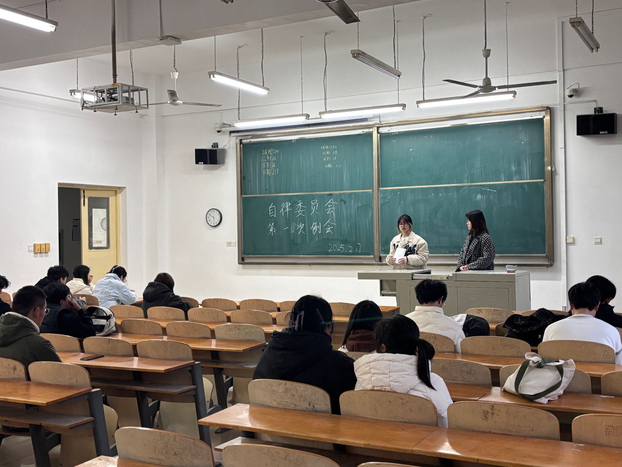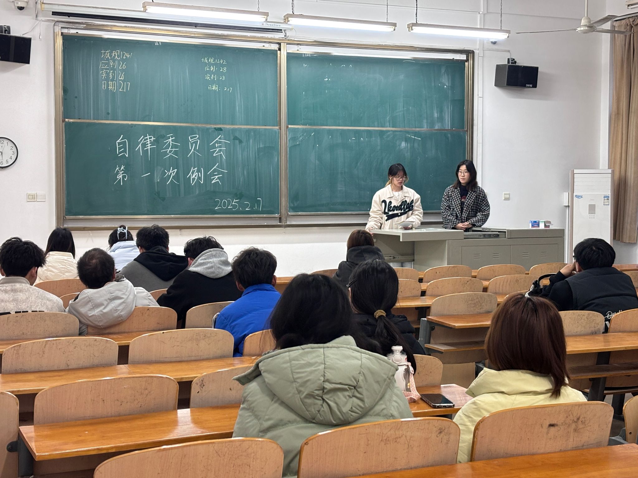2025年2月18日,自律委员会第一次例会在教学楼2-408教室顺利召开。出席本次例会的自律委员会成员包括会长、副会长各部门部长、副部长以及各部门的干事,大家齐聚一堂,共商新学期自律委员会的工作大计。