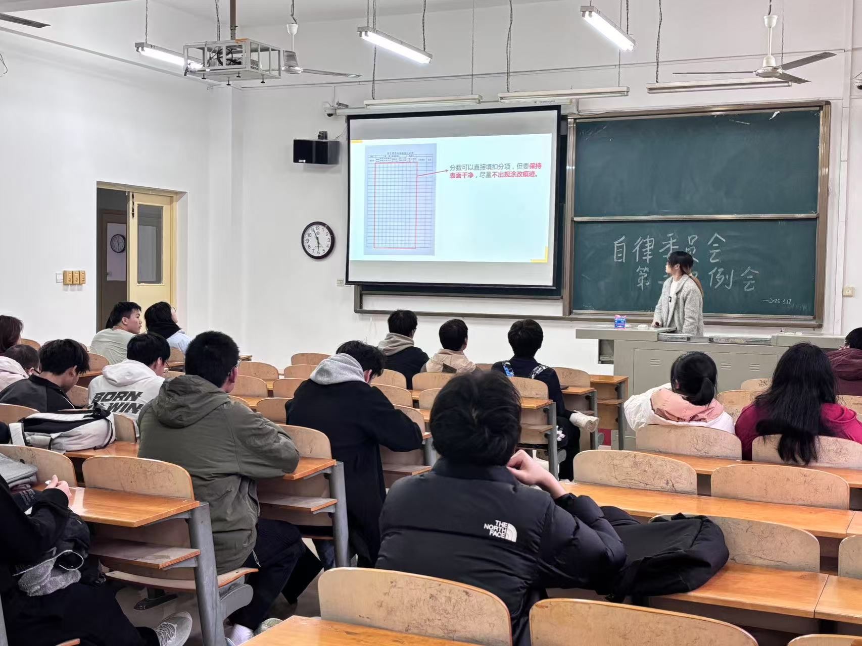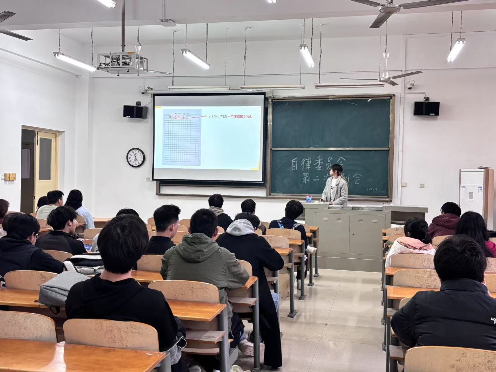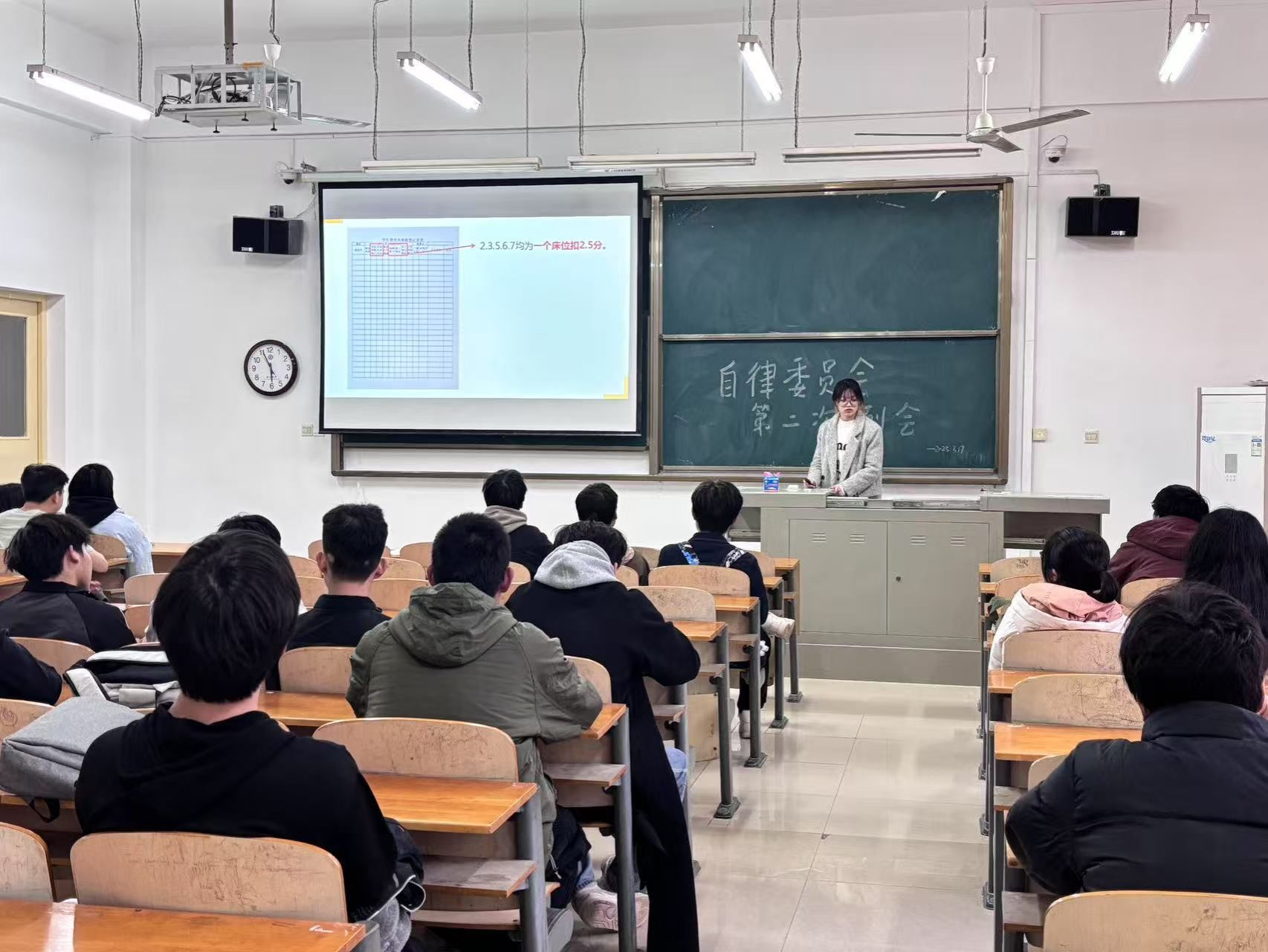 2025年3月17日,自律委员会第二次例会在教学楼2-408教室如期举行。会长、副会长、各部门部长、副部长及全体干事均准时出席,会议由副会长叶佳佳主持,现场氛围庄重而热烈。