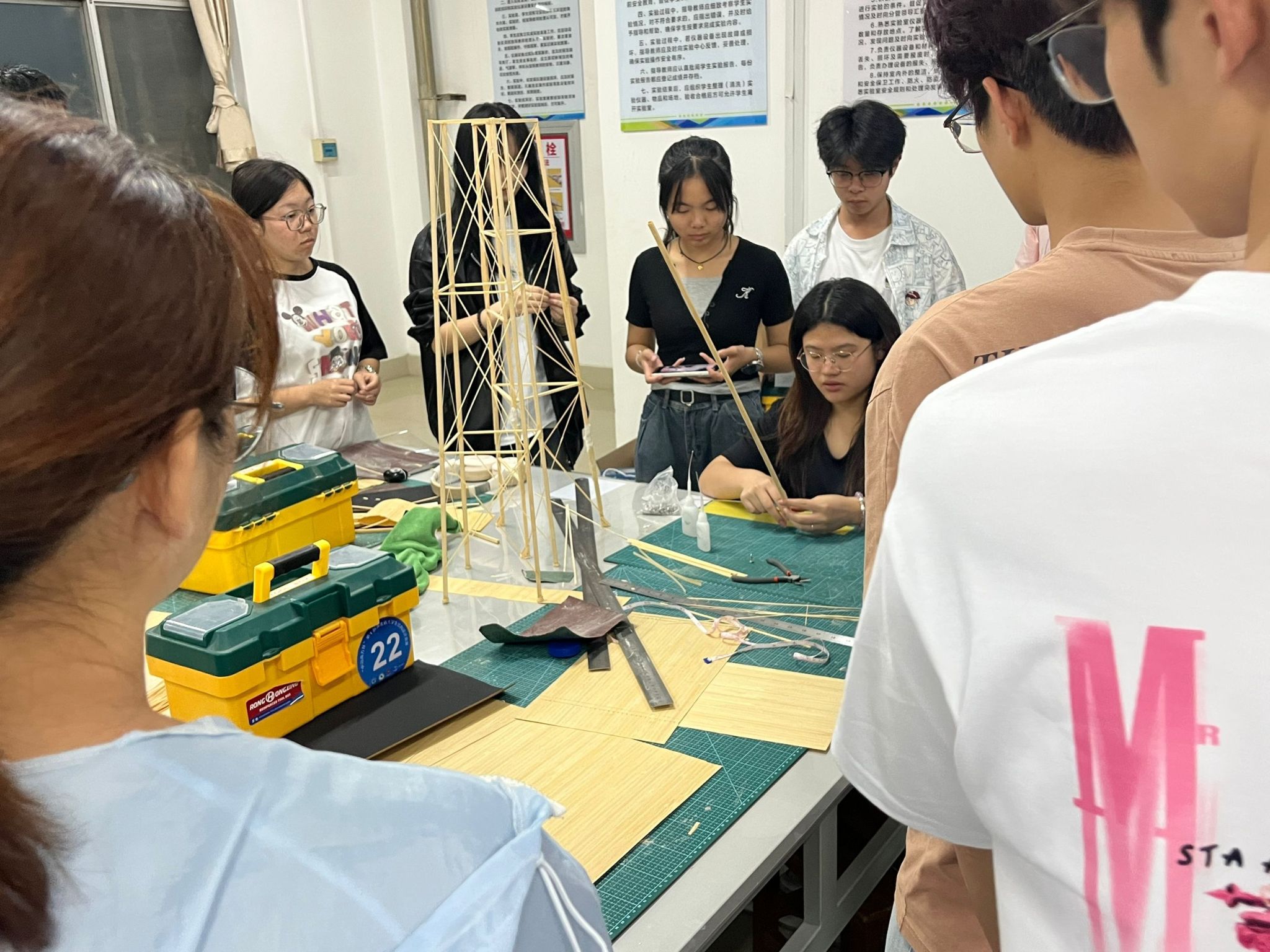 参赛者们全神贯注,认真聆听理论知识,随后迅速投入到实践操作中。大家充分发挥专业所学,结合程文静传授的技巧,精心雕琢每一处细节,力求打造出稳固且科学的模型底座。经过一番努力,一个个承载着巧思与匠心的底座逐步成型,它们将成为模型在后续挑战中稳固屹立的坚实保障,为实现优异的抗震和承载效果奠定基础。