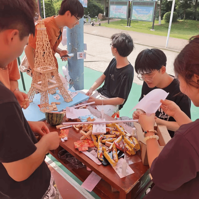 而“20 张 A4 纸搭桥承重 4kg”游戏无疑是全场最具挑战性的项目。同学们充分发挥自己的创造力,精心设计桥梁的形状和结构,当一座座独具匠心的纸桥建成后,便是紧张的承重测试环节。随着砝码的逐个添加,同学们的心也跟着悬了起来,目不转睛地盯着纸桥,直到成功承受住 4kg 的重量,欢呼声才打破紧张的气氛。这个游戏让同学们在实践中体验到了工程力学的魅力,培养了创新精神和解决实际问题的能力。
