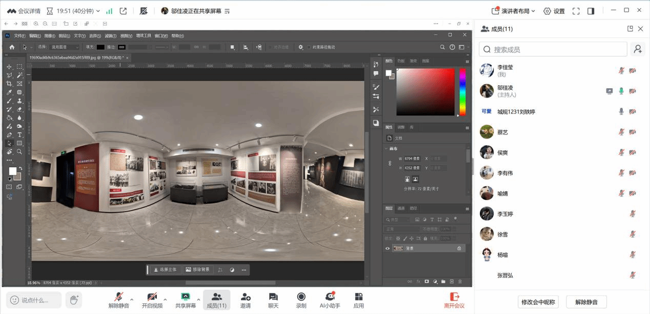 会议伊始,同学们依次汇报了目前720度照片处理的进度。大家积极分享工作成果,展示了已完成的部分照片处理效果,并详细说明了在处理过程中遇到的难题,如照片色彩校准不准确、细节模糊、拼接出现偏差等。随后,同学们就这些问题展开热烈讨论,互相交流处理经验和尝试过的解决方法,以便于图片处理的顺利进行。