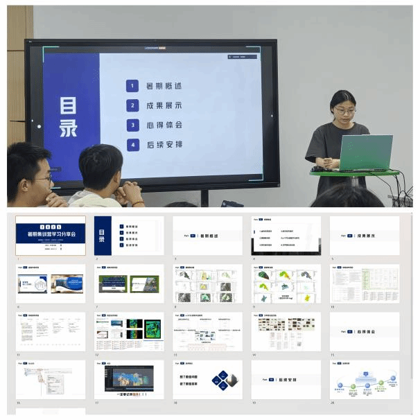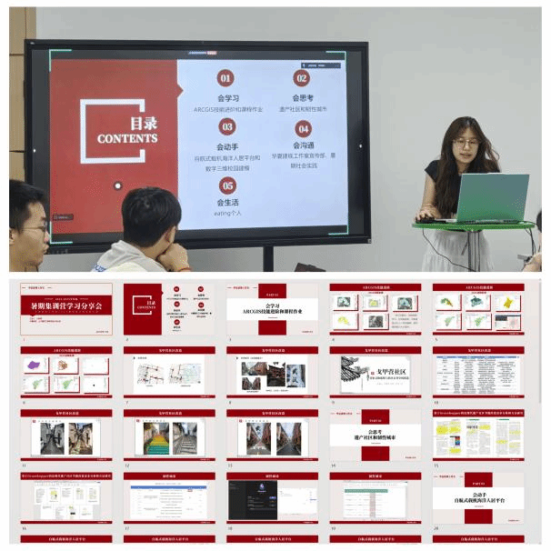 23级刘轶婷同学用“会思考、会学习、会动手、会沟通、会生活”多方面汇报了她暑期的学习之路,从Arcgis的学习、戈甲营社区改造、应用科学研究项目,到韧性城市、数字校园三维建模项目,再到数字赋能思政实践队等,充分展现了她“五会”能力在暑期生活中的运用。
