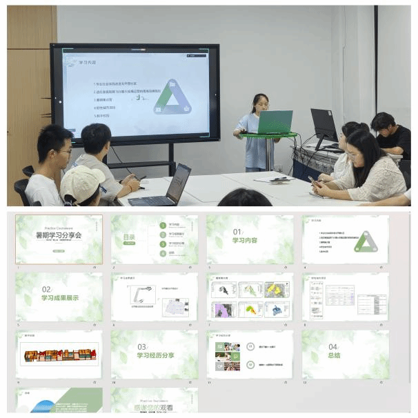 23级刘芸同学系统展示了多元化的学习成果。参与了戈甲营社区改造、面向未来垂直交通的南海岛礁规划、韧性城市研究及数字校园模型构建等多个实践项目。通过集训营及项目实践,重点掌握了ArcGIS地理信息系统应用技巧,深入研究了韧性城市策略,并运用SU软件完成了新校区的部分三维建模工作。