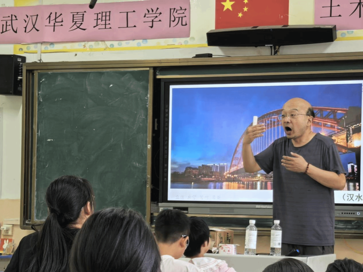卫涛老师以城乡规划系教师的专业视角,为孩子们展开武汉城市发展的画卷。拥有11年建筑设计院一线工作经验的他,不仅实战经验扎实,更在专业领域成果丰硕——已出版涵盖BIM、Revit、AutoCAD等近20部技术图书,是兼具实践与教学能力的行业能手。他结合自身对城市空间的理解,用孩子们易懂的方式讲述武汉的街巷故事、建筑特色,让孩子们对家乡的历史与未来充满好奇。