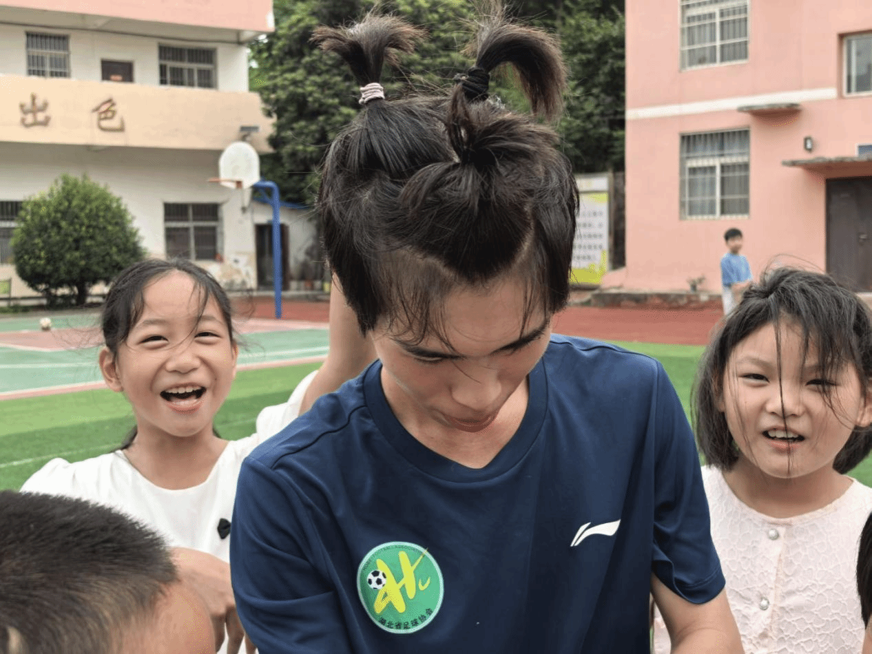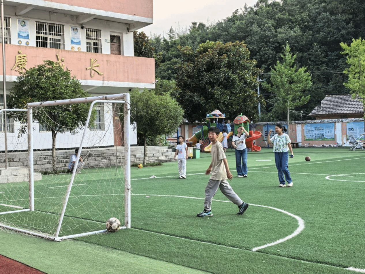 课间时光更是充满欢声笑语。不知是谁提议给男老师扎头发,孩子们立刻围拢过来,有的扯着彩色皮筋,有的踮着脚尖往老师头上别发卡,不一会儿,男老师的头发上就挂满了五颜六色的“装饰”,他故作严肃地走来走去,逗得大家哈哈大笑。随后,一场即兴的足球赛在操场拉开帷幕,志愿者和孩子们分成两队,奔跑、传球、射门,汗水浸湿了衣衫,却挡不住脸上的笑容,欢呼声、呐喊声回荡在校园上空。