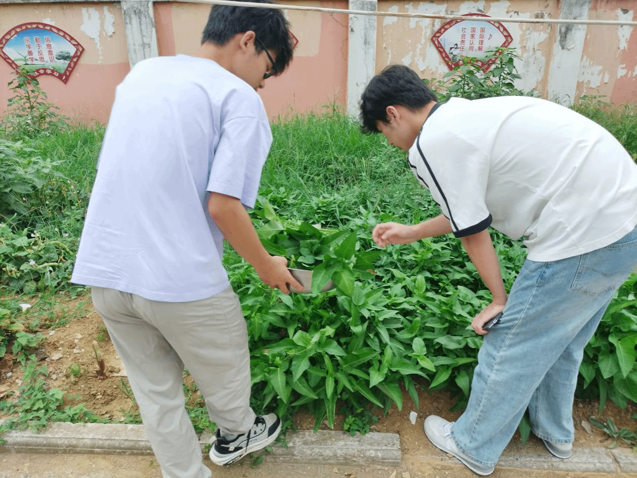 7月22日中午,天气正好,“普润乡村·青春发声”实践队员们在彭家沟小学菜园,开启了一场充满乐趣的采摘行动。翠绿的空心菜鲜嫩欲滴,藤蔓间的黄瓜顶着小黄花,还有圆滚滚的西瓜藏在绿叶下,等待大家的发现。