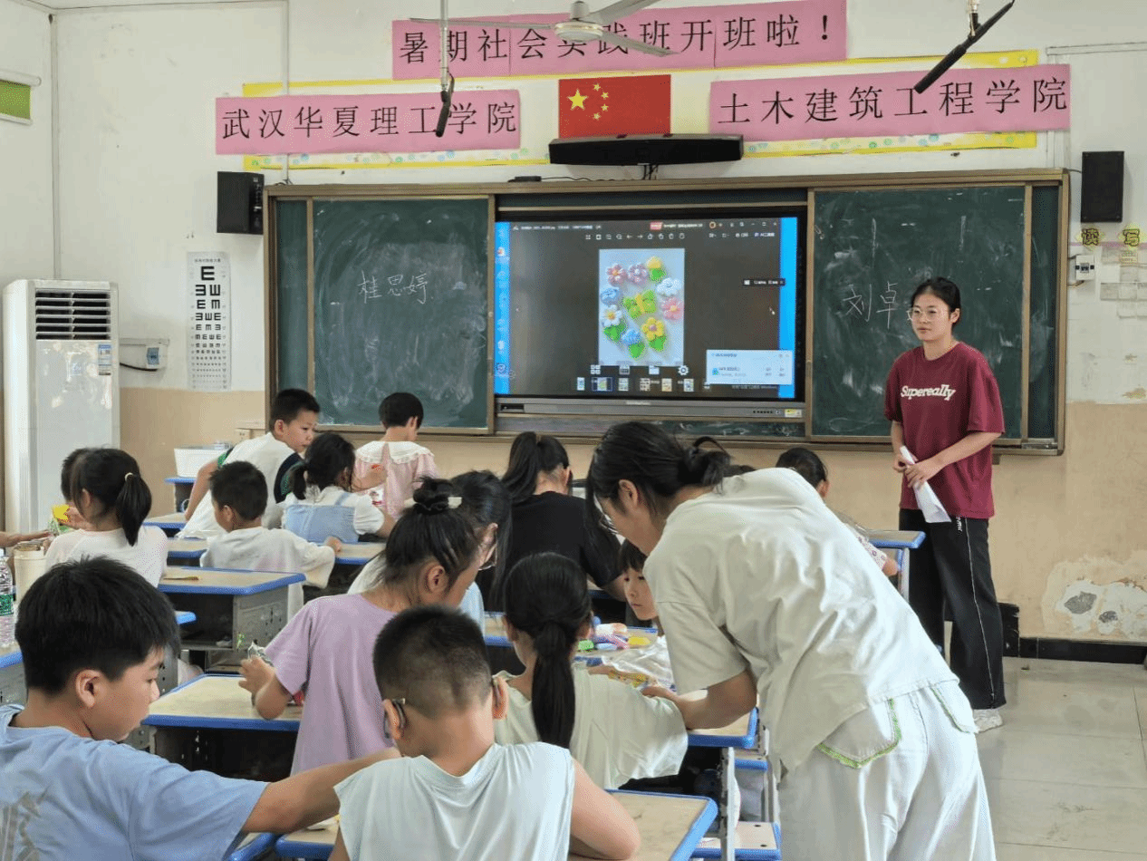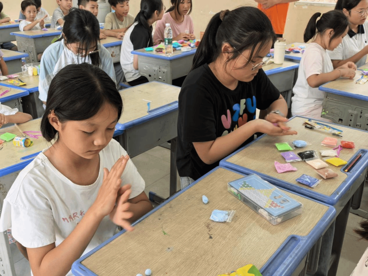 课堂上,刘卓瑶和桂思婷耐心示范着粘土的塑形技巧,从简单的小动物到别致的花朵,一步步引导孩子们发挥想象。孩子们专注地揉捏着手中的粘土,不时举起作品向老师展示,稚嫩的脸上满是成就感。