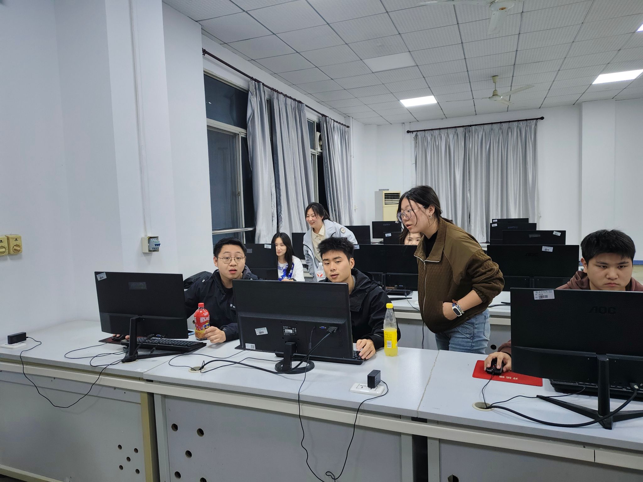培训开篇,杨静容部长围绕图层设置规范与轴线绘制技巧展开核心讲解,结合赛事绘图的实际需求,明确了图层管理对高效绘图的重要性。随后,她以习题为载体,拆解了相关CAD命令的应用逻辑,并采用“分步演示+同步练习”的模式,引导同学们边学边练、深化理解。为确保每个同学都能掌握操作细节,主讲和助教还走到同学们的身旁,针对个性化问题进行一对一指导,及时解决实操中的卡点,全程跟进同学们的练习进度,快速响应各类操作疑问,现场互动紧密、学习节奏紧凑。这种“精准讲解+贴身指导”的模式,既巩固了理论知识,更帮助同学们熟练掌握了赛事常用的绘图技巧,有效提升了实战应用能力。