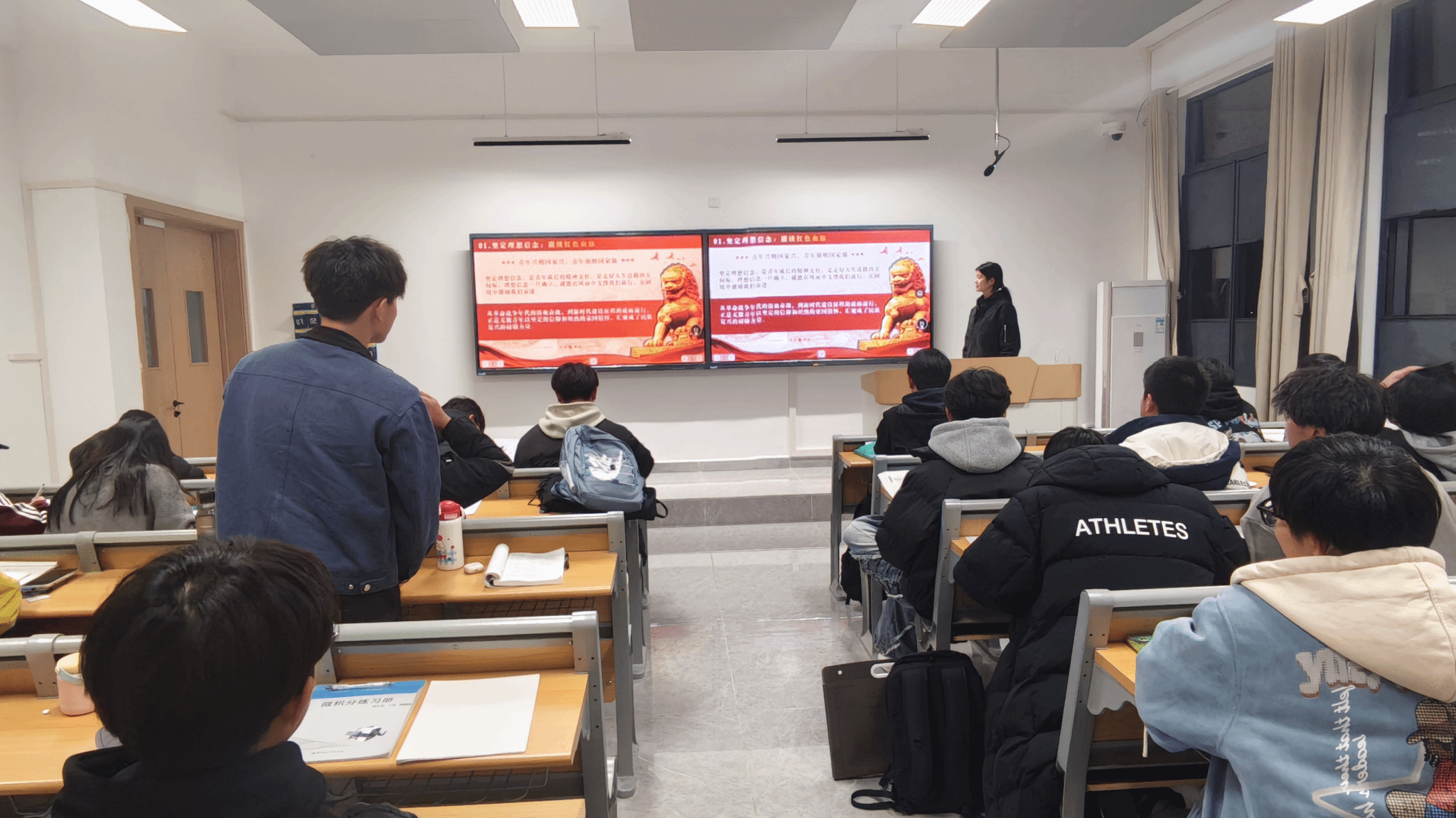 在C308教室,土木1251班团支书许一朵主持的“厚植家国情怀,青春礼献祖国”主题团日活动,以“红色血脉—青春逐梦—使命在肩—行动践行”为脉络,将家国情怀织进了土木青年的专业与青春里。