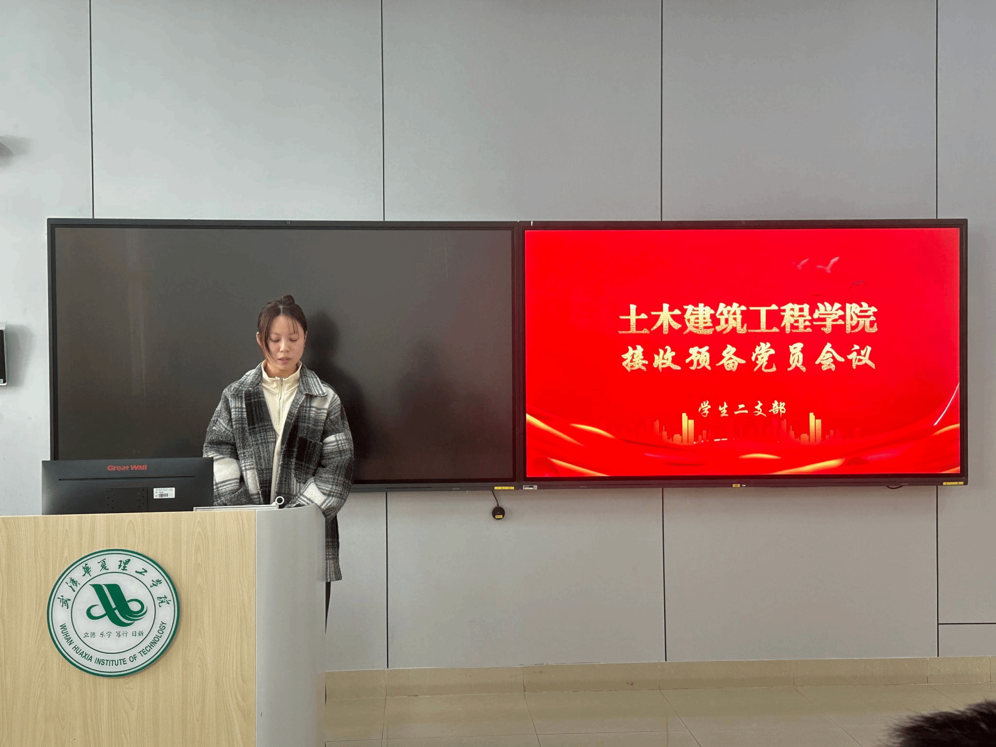 2025年11月25日中午12点,土木建筑工程学院学生二支部于二教102教室召开接收预备党员支部会议,会议由学生第二党支部书记黄呈主持,支部全体党员参加。