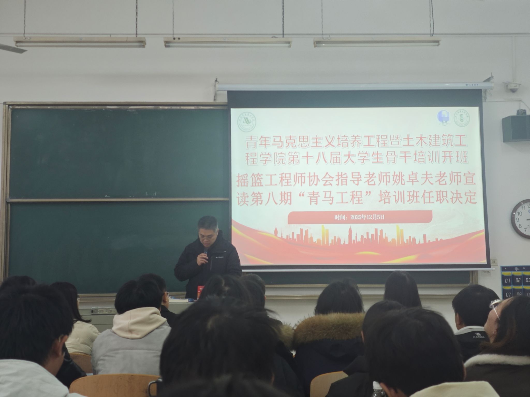 为了深入学习贯彻党的二十大精神、奋力推进中国式现代化建设的关键时期,2025年12月15日中午12:10,我院在教学楼2-108举行青年马克思主义者培养工程暨大学生骨干培训班正式开班。