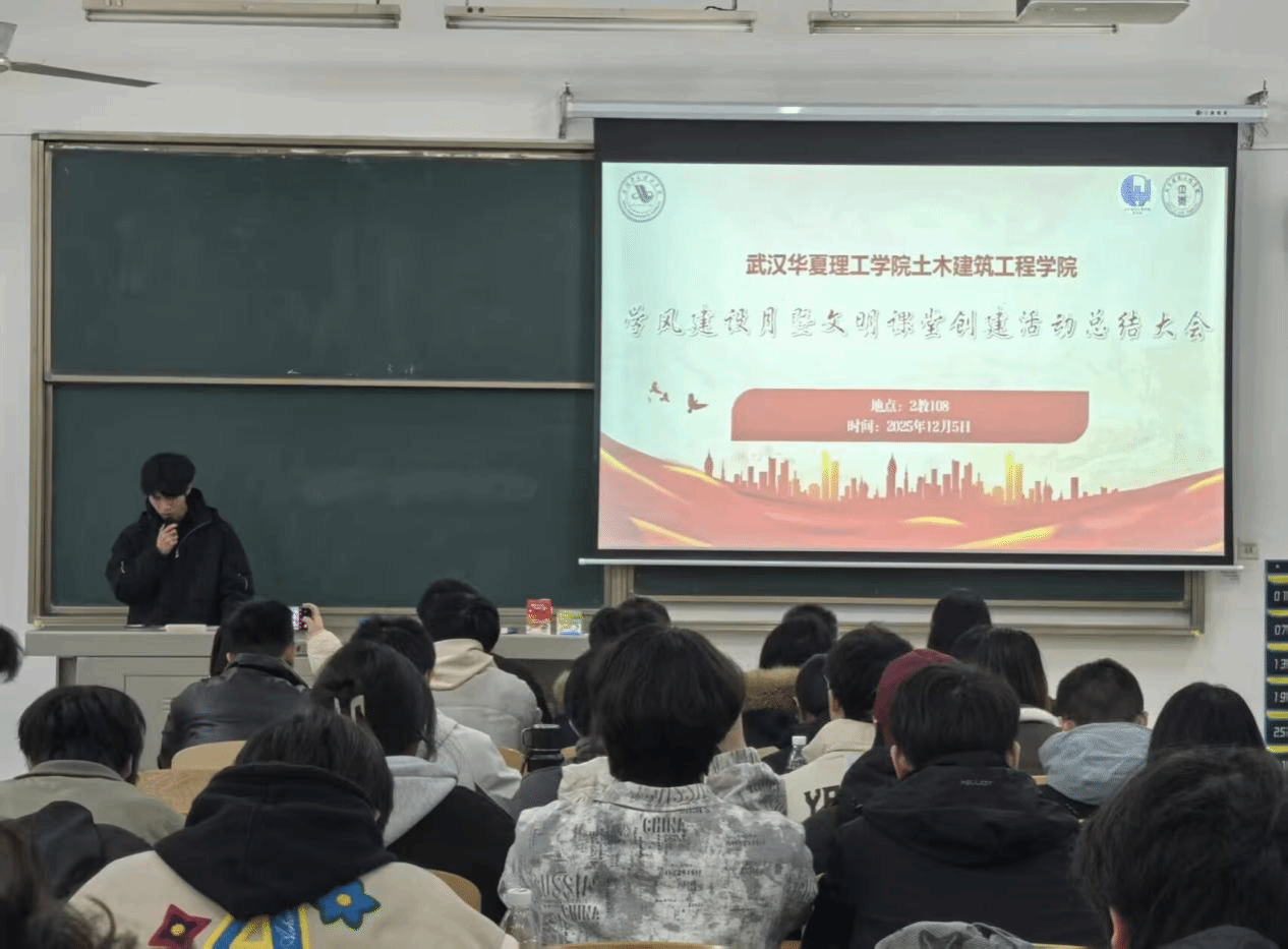 为深化课堂文明建设,筑牢青年思想根基,12月5日12:10,土木建筑工程学院于2-108教室顺利开展文明课堂创建活动总结大会。学院党总支副书记徐双立、学工办主任杨柳、团总支书记昌仪琳、摇协指导老师导员姚卓夫、青协指导老师黄呈老师出席活动,相关班级代表参会。