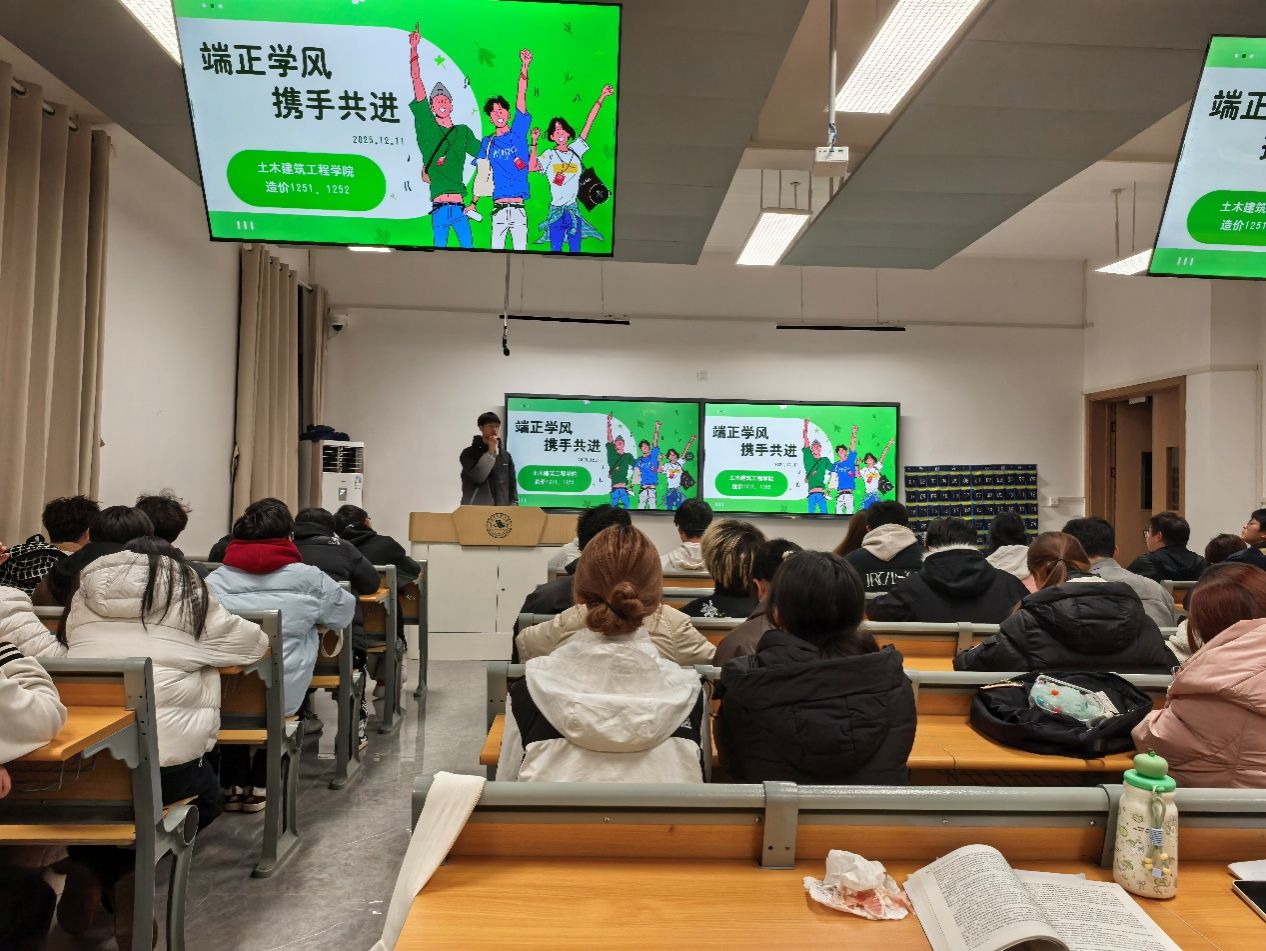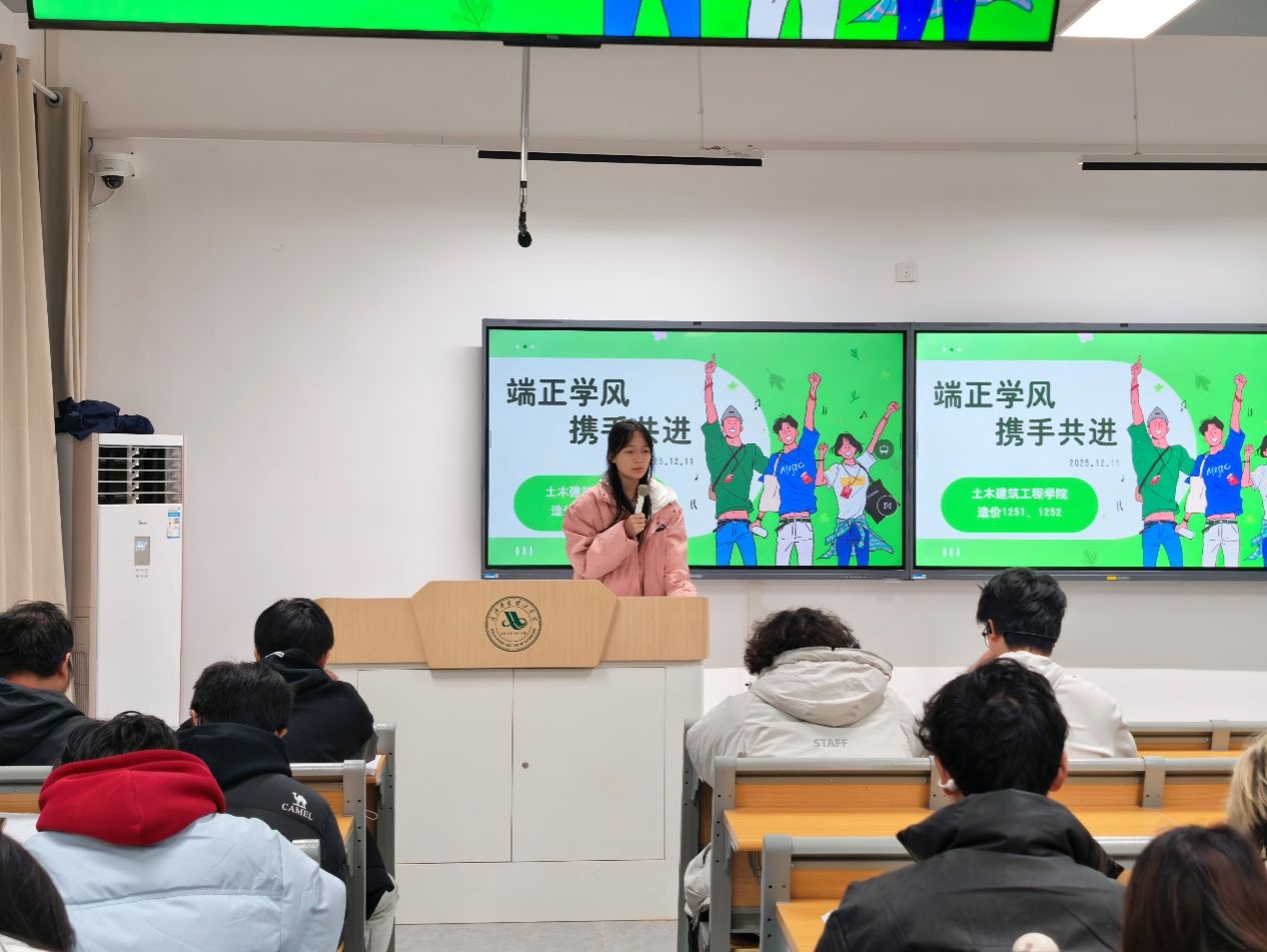 为加强学风建设,营造诚信向学的校园氛围,12月11日晚,beat365梧桐湖校区工程造价1班与2班联合举办了“端正学风,携手共进”主题团课。活动聚焦学业诚信教育,并对校区即将推行的“无人监考场试点工作进行了重点宣讲与动员。