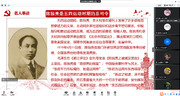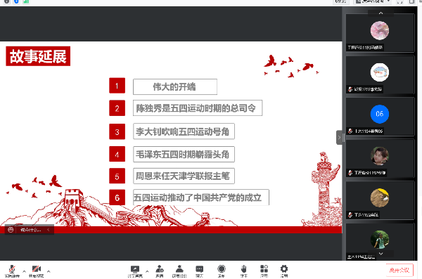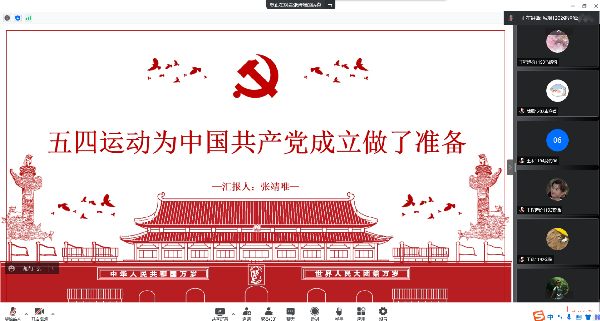2022年5月6日晚上9点,土木建筑工程学院党员服务站在线上腾讯会议组织了第二次党课的学习。党课由党员服务站组织,党员服务站各成员参加,张靖唯同学主讲本次的党课,主题为《五四运动为中国共产党的成立做了准备》。