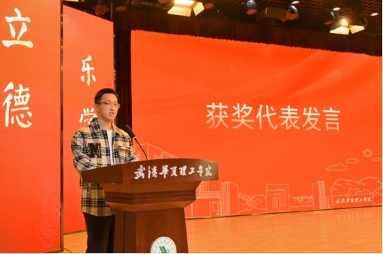 优秀学生代表胡小强作为获奖者代表发言。他分享了自己的成长经历和参赛心得,表达了对学校和老师们的感激之情,并鼓励学弟学妹们要心怀梦想,努力拼搏,让自己发光,为学校争光。