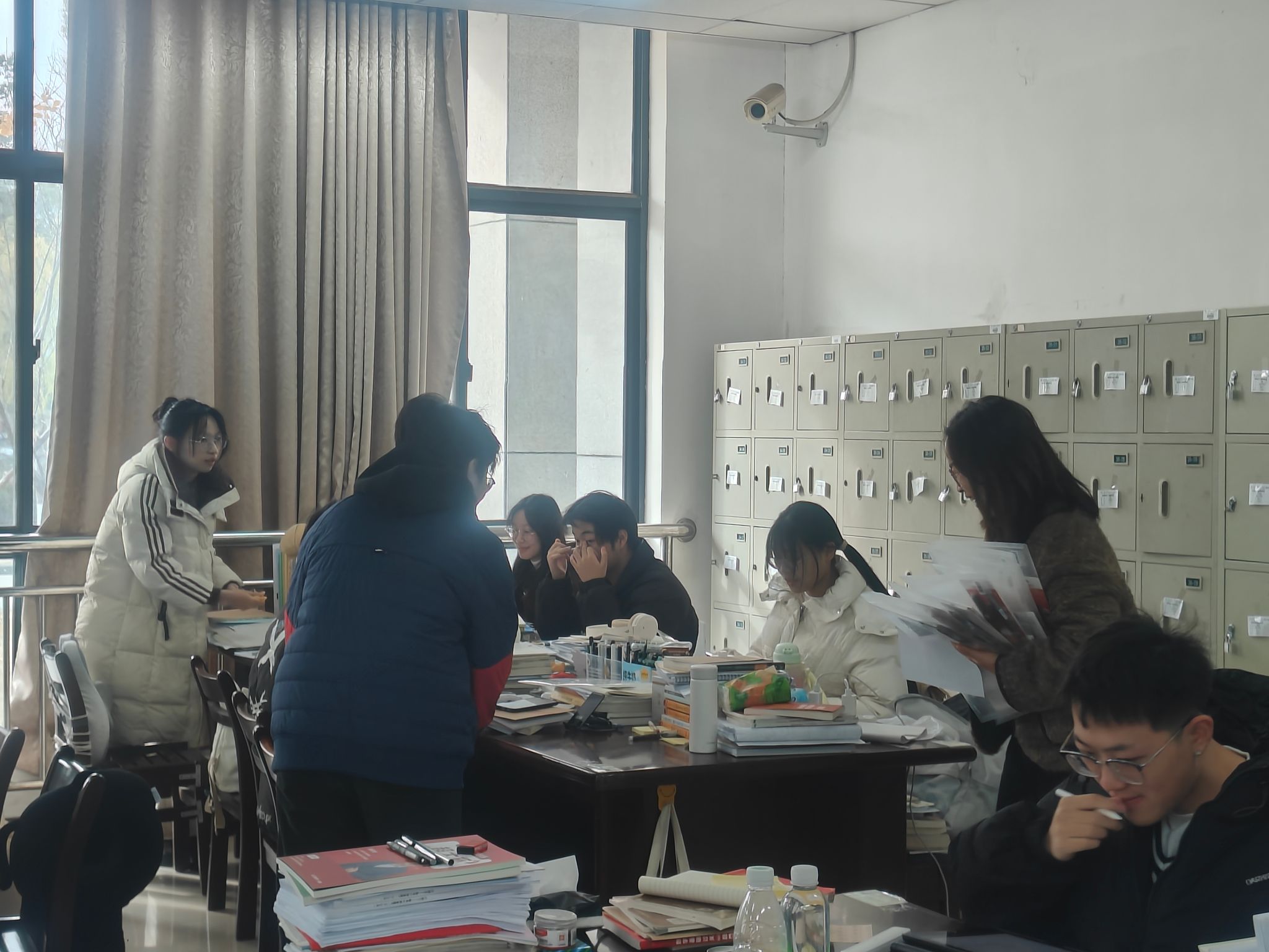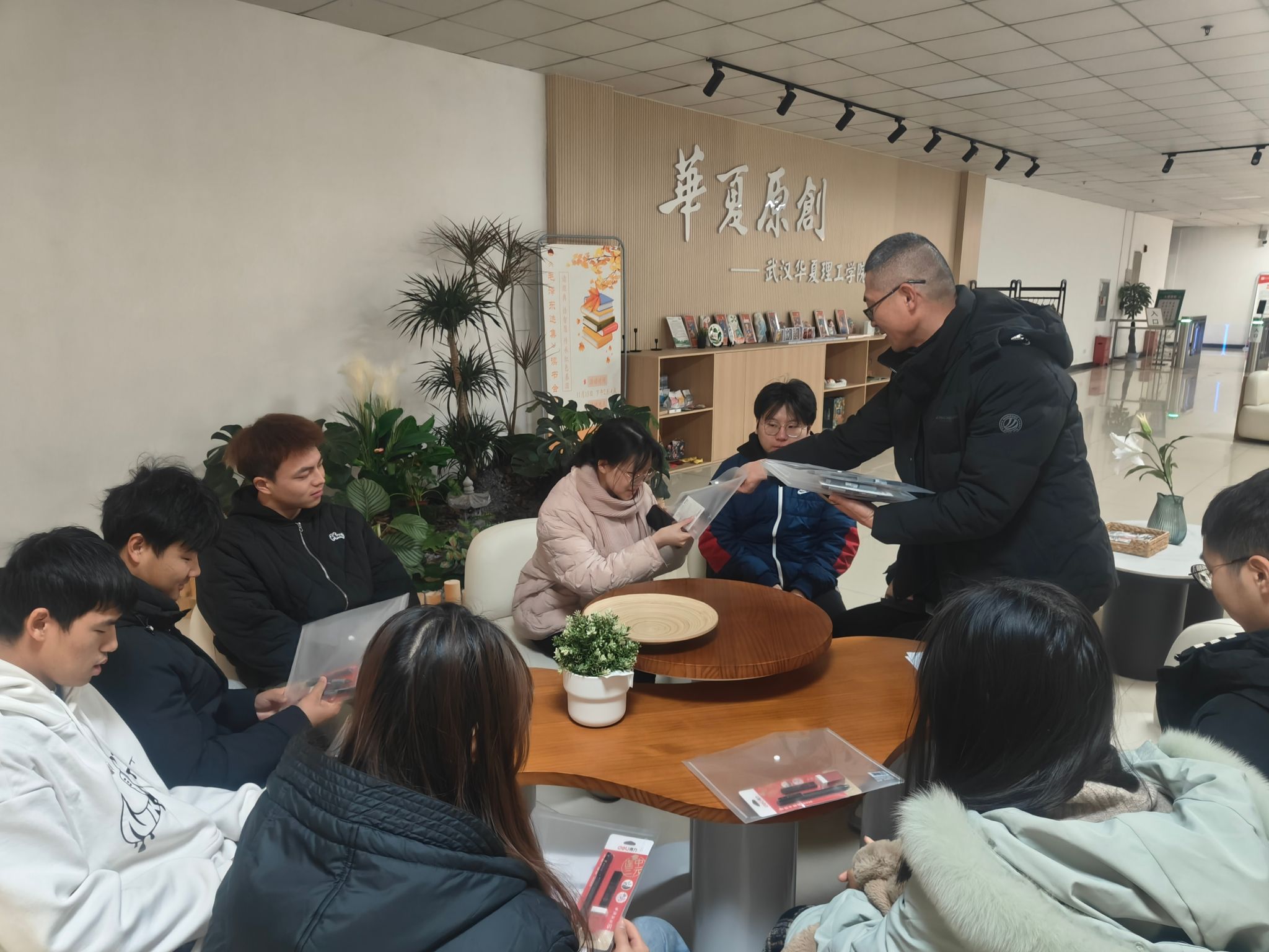 毕业班辅导员在考研自习室给正在备考的学子送上学院的心意。