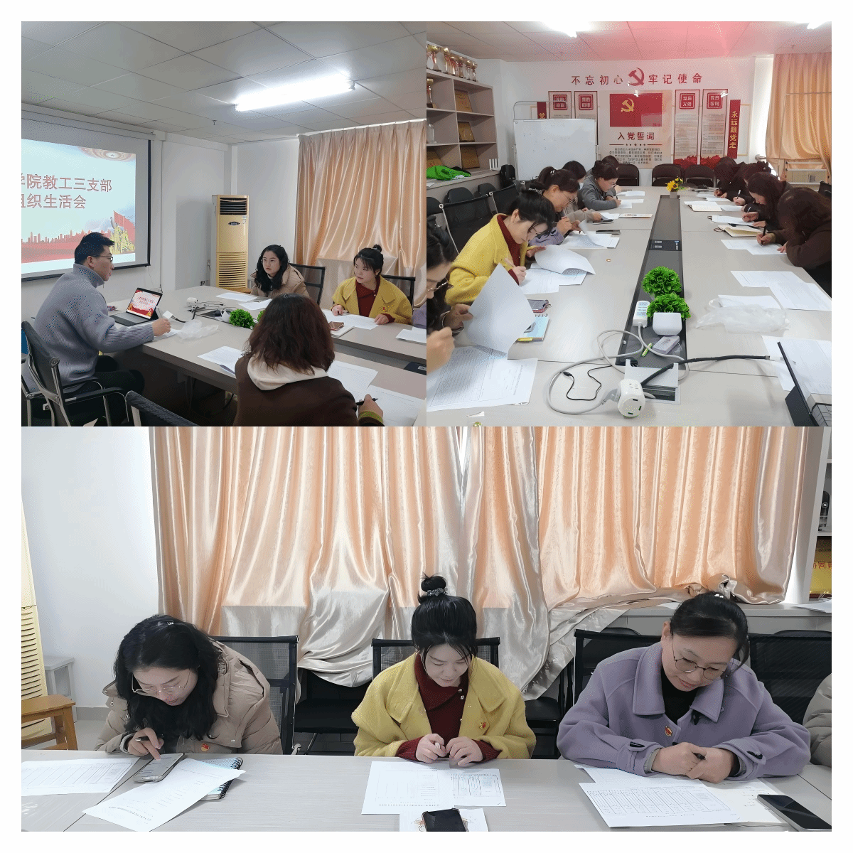 2024年3月5日中午,土建学院教工第三党支部于综合楼1021会议室召开组织生活会,重点开展民主评议党员工作。会议由党支部书记张城芳同志和副书记徐亚琪同志共同主持,支部成员张力文、朱韶茹、李静、李珊、周薇、郝翠丽、杨喧、朱红玉、童建等同志出席会议。