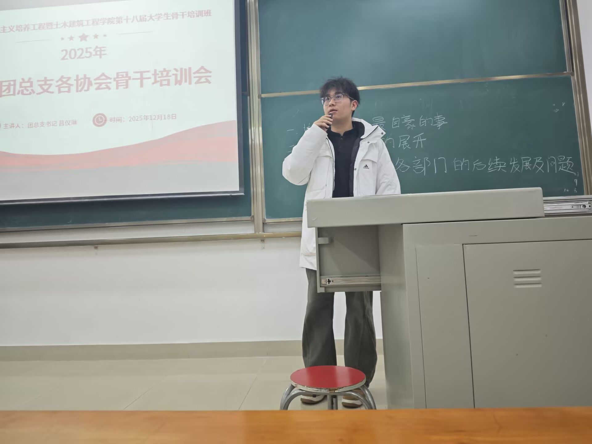 培训开始,昌老师首先带领全体学员起立唱团歌,随后讲解了团支部工作注意事项。昌老师的培训为我们讲解了团支部的作用其性质与职责还有团支部的重要性,全面了解团支部的性质与职更能有助于进一步提高对团支部的认识,明确做好团支部工作的意义,从而更好地推进团支部的建设。