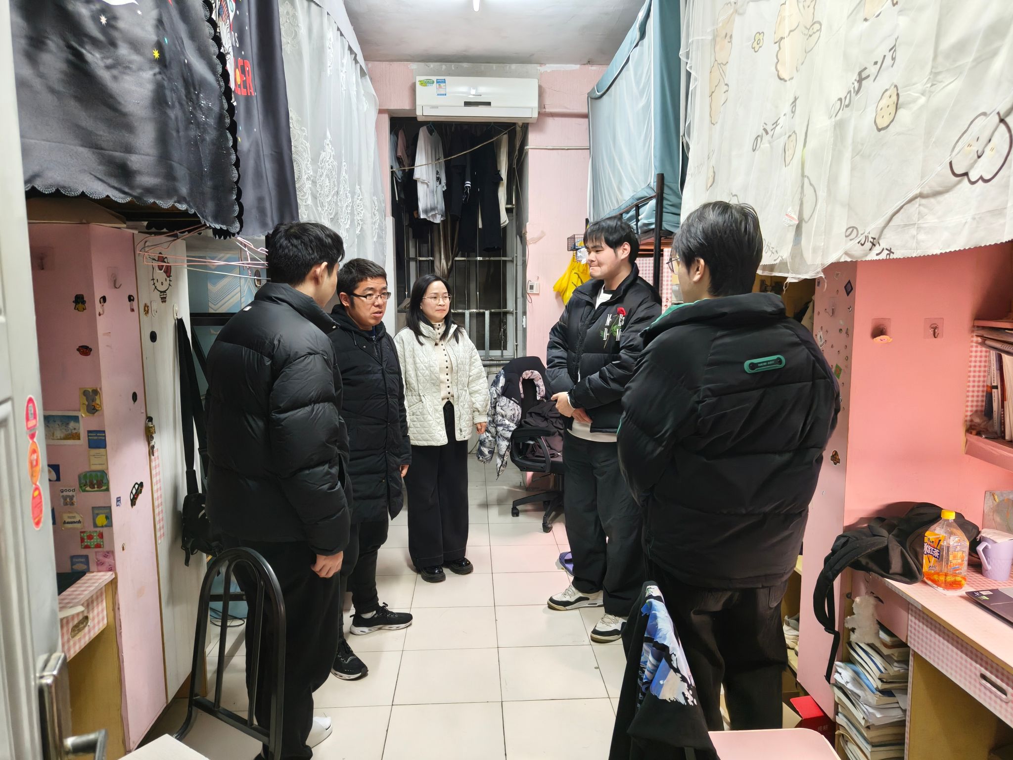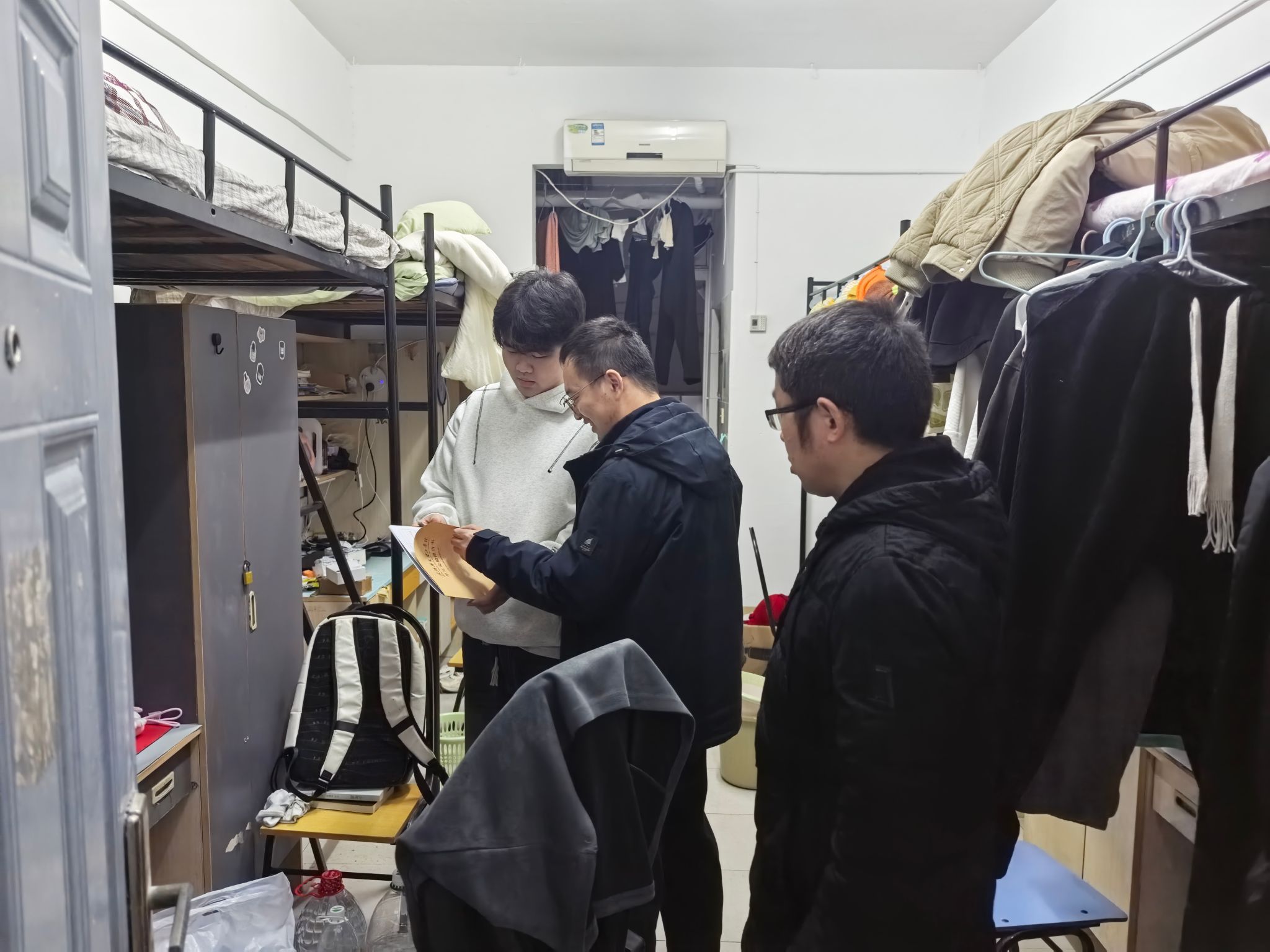 走访过程中,领导老师们与学生亲切互动,叮嘱大家合理安排假期时间,注意劳逸结合。一句句问候、一声声叮嘱,让寒冬中的宿舍充满温情。学生们纷纷表示,学院的关怀让他们倍感温暖,将以更饱满的状态投入学习生活。此次行动不仅强化了校园安全管理,更搭建起师生沟通的桥梁,为构建和谐育人环境注入新动能。
