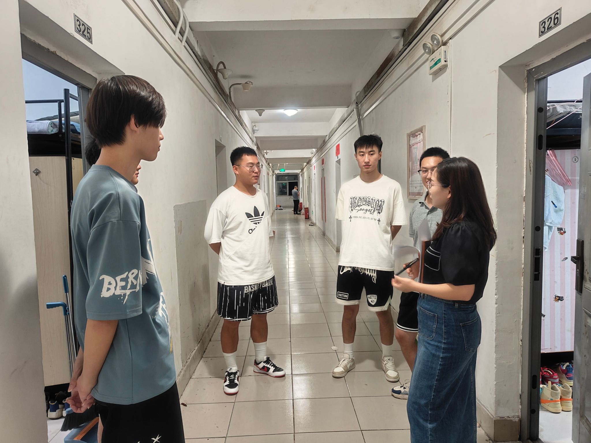 2023年9月2日晚,土木建筑工程学院学工办主任樊策己和辅导员程鹏、黄呈、昌仪琳、高文华一行来到学生社区,与刚刚入学的新生及返校的学生们亲切交谈,深入探访并详细了解学生的住宿和生活情况。