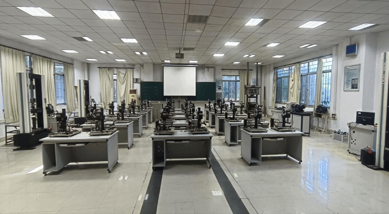 力学实验室于2006年11月21日成功通过整体验收小组的验收,坐落于一号实验楼一楼104教室。实验室内配备了五台电子万能材料试验机,主要用于金属材料的拉伸与压缩实验。这种试验机将电子技术与机械传动完美结合,在载荷、变形、位移的测量和控制方面具有较高的精度与灵敏度。借助X-Y函数记录仪,能够准确记录载荷-变形曲线,与计算机联机后,更可实现控制、检测和数据处理的自动化。部分电子万能机还具备恒载荷、恒应变、恒位移自动控制以及低周循环载荷、循环变形和循环位移等功能。金属材料的拉压实验不仅为土建学院服务,同时也为智能制造等专业提供了实验操作平台。