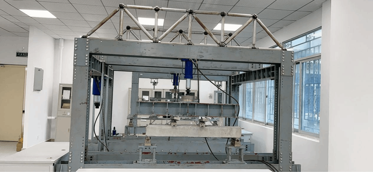 土木工程综合训练实验室始建于2005年,使用面积212m2,现有各类教学仪器设备80余台,是集结构特性、材料检验、路桥实验为一体的大型综合实验室。结构特性实验设备有:YJ-ⅡA型结构力学组合实验装置、YJ-Ⅲ型建筑力学组合实验装置、uT3408FRS-DY数据采集分析系统、uT4908动态应变采集分析系统、uT7010高速静态应变采集系统、uT3202FRS-ICP2通道数据采集分析系统以及多种结构模型;材料检验实验设备有:摇筛机、全自动水泥压力试验机、水泥电动抗折试验机、水泥净浆搅拌机、水泥胶砂搅拌机、水泥胶砂振实台、安定性沸煮箱、水泥恒温恒湿标准养护箱、混凝土振动台等;路桥实验设备有:落球式回弹模量测试仪、桥梁沉降检测仪、低应变基桩检测仪、摆式摩擦系数测定仪、电动铺砂仪、动力触探仪、钢筋锈蚀检测仪、一体式钢筋扫描仪、回弹仪、裂缝综合测试仪、midas Civil桥梁结构通用分析软件2020、JSL路线专家系统软件等。
