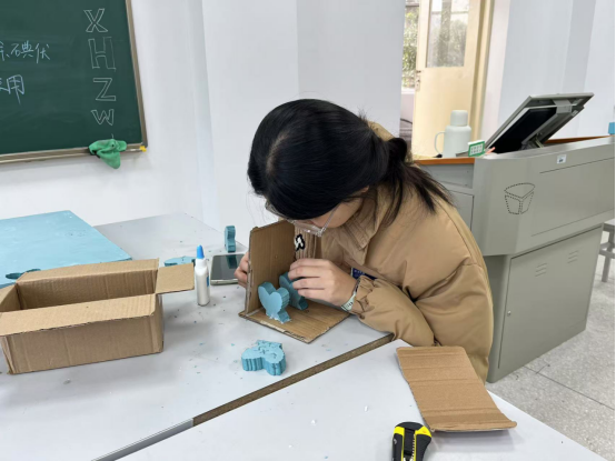 更为值得一提的是,同学们在创作过程中积极响应环保理念,巧妙利用废弃快递盒、泡沫盒、饮料瓶、一次性餐盒等日常废弃物作为模具,既节约了资源,又减少了环境污染。这种废物利用的方式,不仅让同学们在实践中体会到了环保的重要性,也锻炼了他们的动手能力和创新思维。
