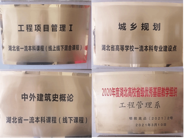 学院科研力量雄厚,反哺教学效果明显。近五年获得省级以上纵向项目近20项,签订各类横向科研项目70余项,编写教材50余本,发表论文近200篇,获国家专利近20项,科研总经费到账500多万元。城乡规划专业获批湖北省一流本科专业建设点,中外建筑史、工程项目管理和国地空间规划体系中的村庄规划调研及方案模拟虚拟仿真实验获批湖北省一流课程建设点,工程管理系获批湖北省优秀基层教学组织建设单位,学院获批教育部产学研项目申报建设单位和教育部“1+X”(建筑信息模型BIM)职业技能考试点。