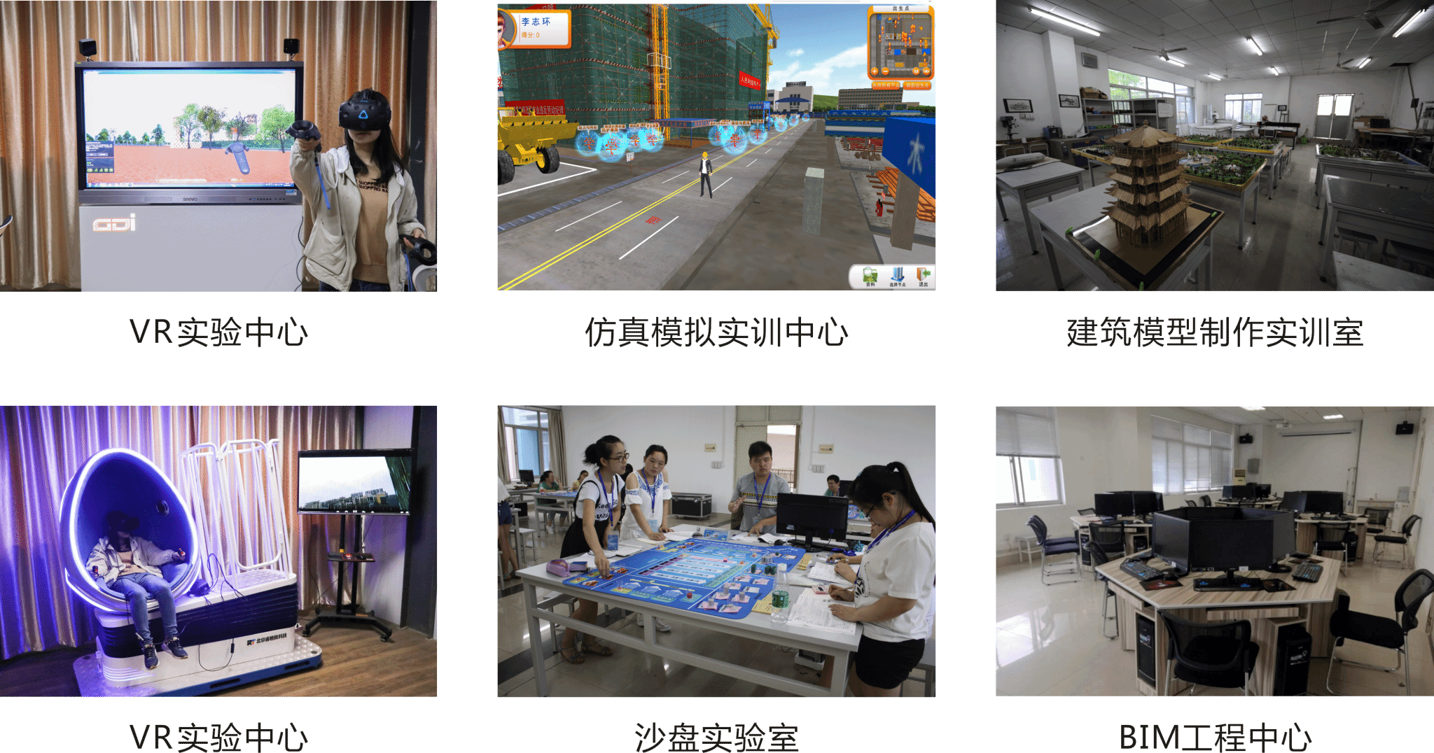 学院实验中心建有力学实验室、土力学与钢筋模型认知实验室、土木工程综合训练实验室、智慧建造施工与管理实验室、智慧设计与生产实验室、智慧建造项目管理实验室、工程项目管理沙盘与模型实训室、工程测量实训室和BIM综合实训室等9个实验室。