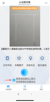 1、人脸采集必须为本人,否则无法通过身份核验