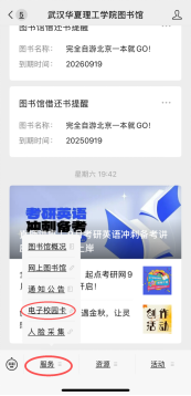 在菜单栏点击“服务”,选择“电子校园卡”并注册