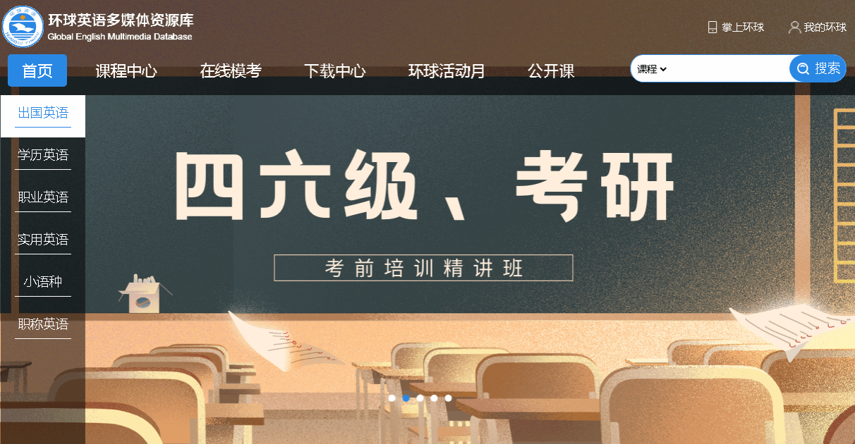 环球英语多媒体资源库涵盖出国英语、学历英语、应用英语、职业英语、热门小语种、职称英语等六大类九百门近27000集环球名师海量课程视频,充分满足在校大学生考试、外语学习、出国、求职等多种实际需求。