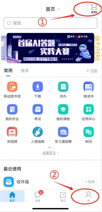 方法二:打开“学习通“APP”,点击手机屏幕右上扫码功能,扫码二维码,图书即可下载至书架中,阅读进度可保留。