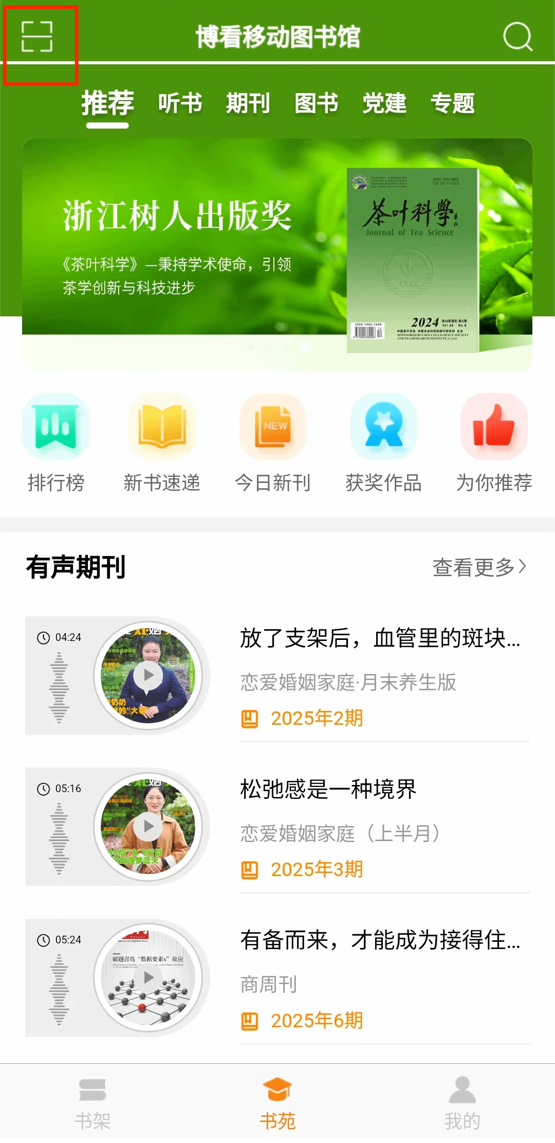 二、下载【博看书苑】APP,在检索栏直接输入想看的书籍进行阅读。