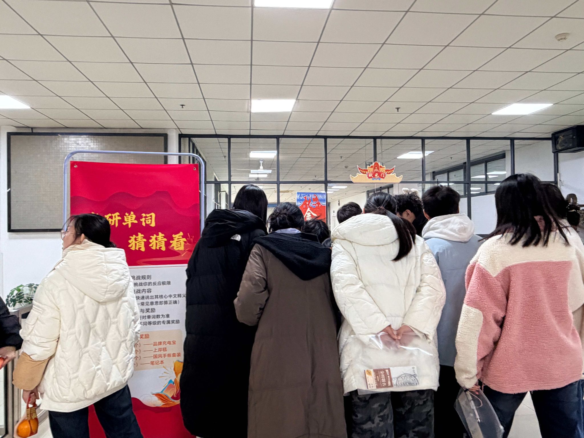 寒冬已至,考研临近。12月12日下午,图书馆一楼中庭暖意融融、欢声不断。由图书馆主办、日新文化融媒体工作室协办的“鱼跃龙门・研途闪耀”考研加油暖心行动温情上演。活动现场四大互动区域各具特色,吸引了数百名学生参与。通过趣味互动、暖心礼品与集体祝福,图书馆为冲刺阶段的考研学子送上一场别开生面的“心灵补给”。