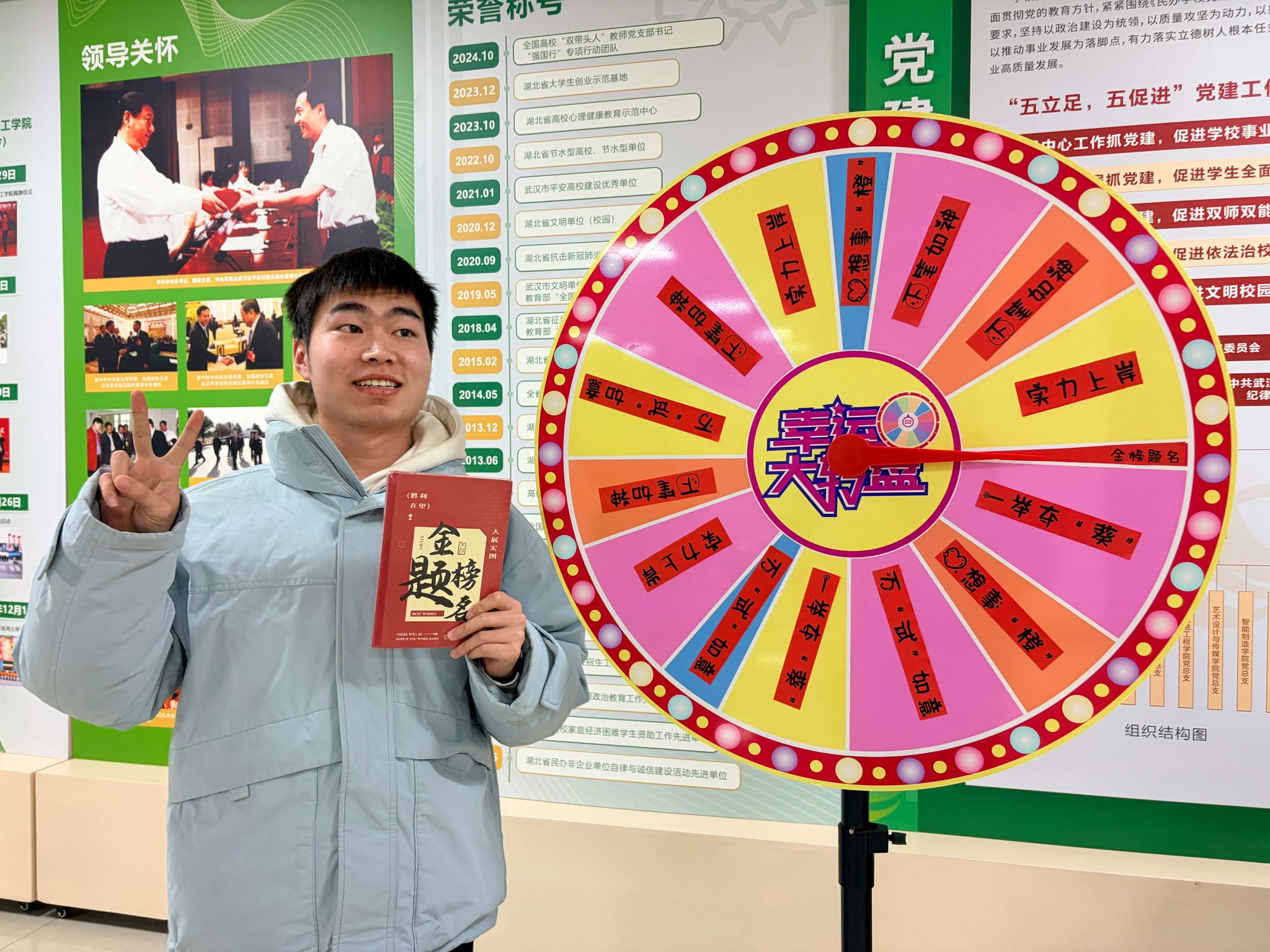 在“转盘纳吉·锦鲤加持”的幸运局区域,幸运转盘吸引着一波又一波考研学子驻足,欢笑声此起彼伏。万“试”如意、下笔如神、一举夺“葵”、金榜题名……每一句加油,都是对坚持的温柔回应。