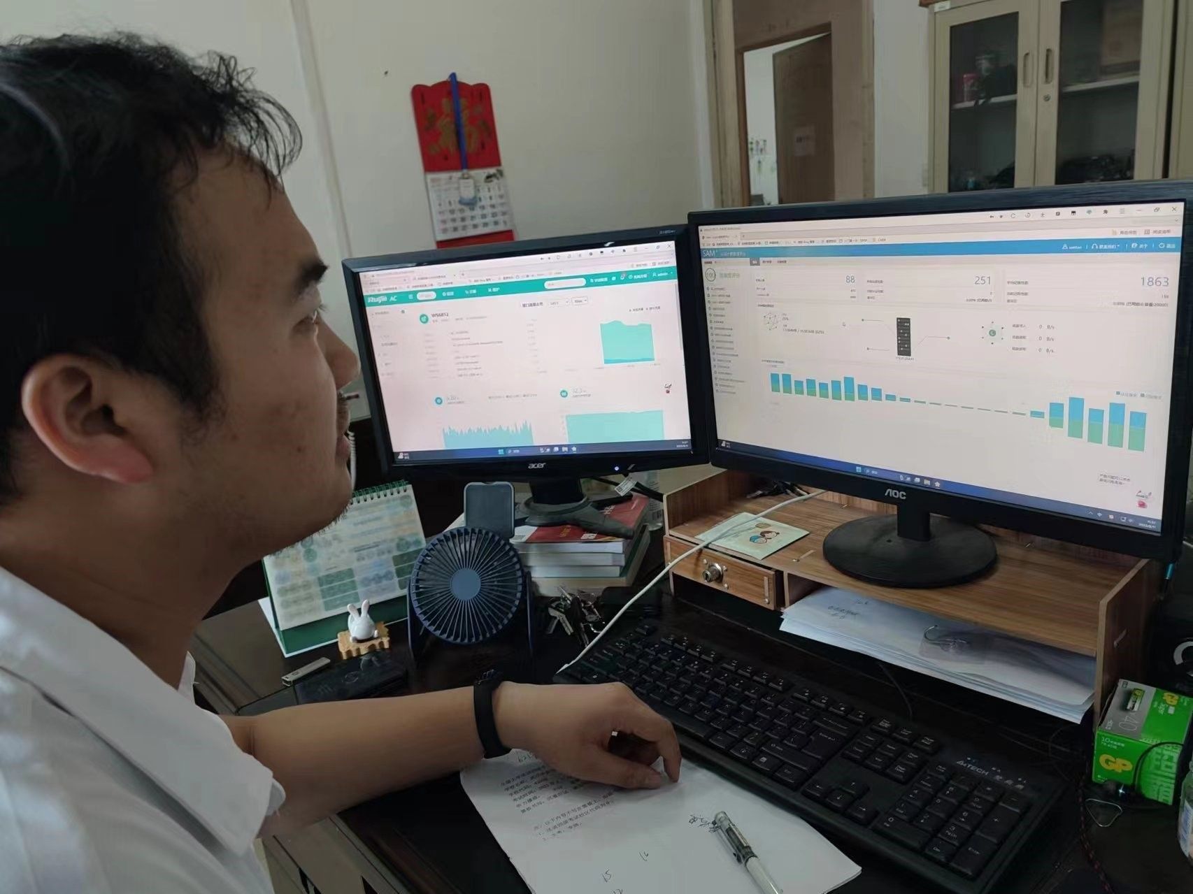 网络的稳定运行也离不开幕后的技术支持。图书馆信息安全中心技术人员对后台服务器和网络的运行状态进行实时监控,及时排除安全隐患,将问题终结在“摇篮”中。在历时2天的迎新工作中,各系统运行稳定,校园网络“零”故障,为学校迎新工作提供了稳定、可靠的网络技术保障。