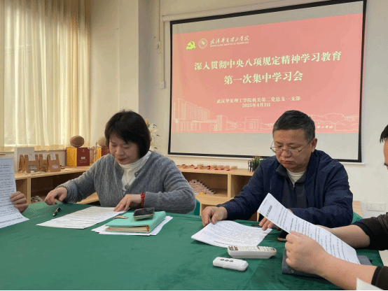 4月3日,机关第二党总支第一党支部在图书馆一楼举办深入贯彻中央八项规定精神学习教育第一次集中学习会。一支部全体党员参加了集中学习,学习会由机关第二党总支第一党支部书记张莹主持。