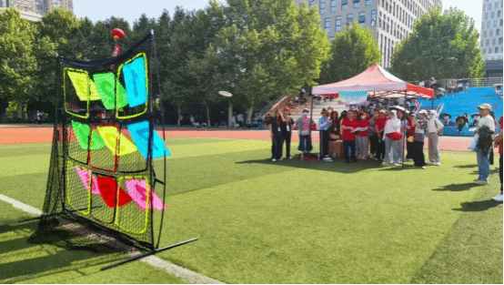 本次运动会为教职工设置了丰富多样的比赛项目,陆地龙舟、九宫格射门、定点投篮、飞盘套圈等。来自图书馆综合办公室的张帆老师、教学资源服务中心的汤彪老师和文献资源中心的李盈老师参与了飞盘套圈。