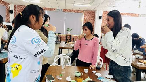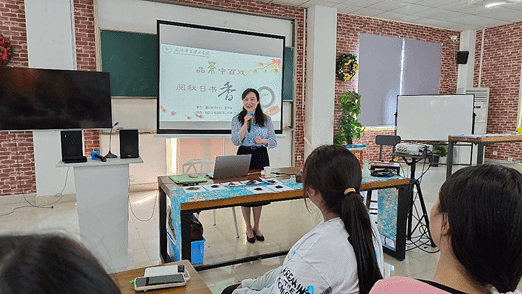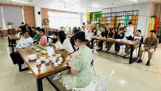 活动中,师生们不仅学习了中国博大精深的茶文化,了解到茶叶的历史文化和茶叶种类,还能通过实物对茶叶种类进行辨别。亲手泡上一壶茶,相互交流各种茗茶的独特风味,佐以各类美味茶点,感受茶艺的唯美典雅。